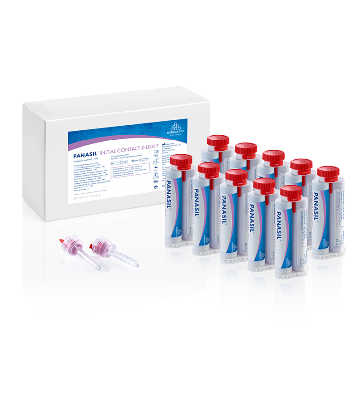 Panasil initial contact ist ein Light body auf A-Silikon-Basis mit besonders hoher initialer Hydrophilie für die Präzisionsabformung. Es ist in drei Varianten erhältlich: