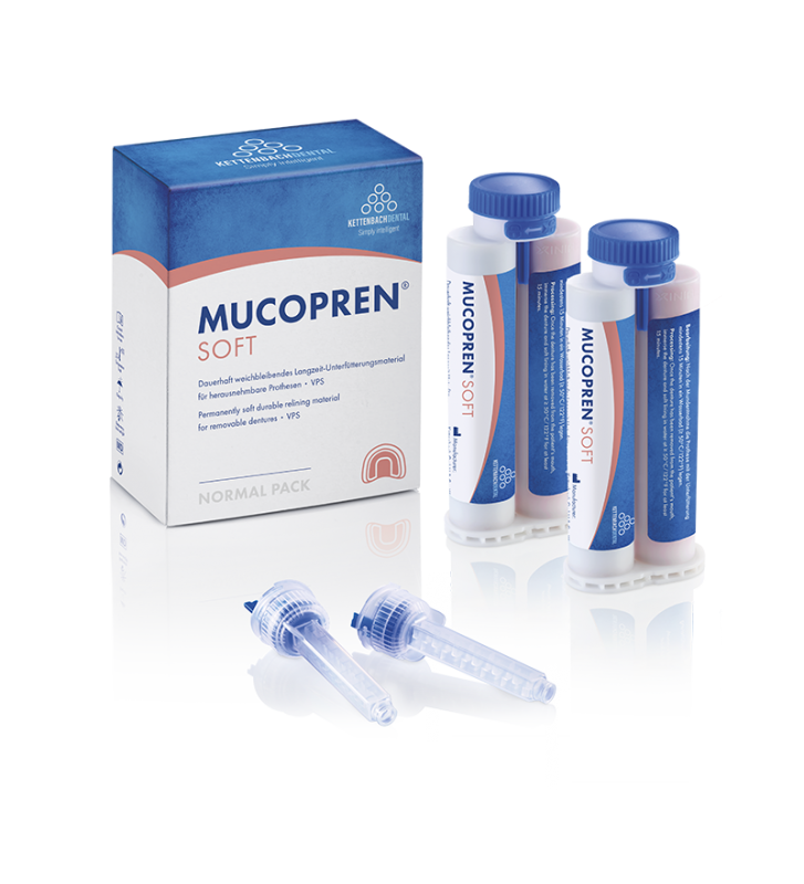Mucopren Soft ist ein weichbleibendes Langzeit-Unterfütterungsmaterial für herausnehmbare Prothesen auf A-Silikon Basis.