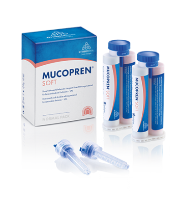 Mucopren Soft ist ein weichbleibendes Langzeit-Unterfütterungsmaterial für herausnehmbare Prothesen auf A-Silikon Basis.